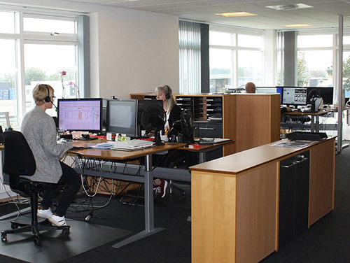 Kundeservice håndterer alle henvendelser, også de tekniske. Hvis problemet ikke kan klares via telefonen, har vi folk på vejene, der kan komme forbi virksomheden og hjælpe.